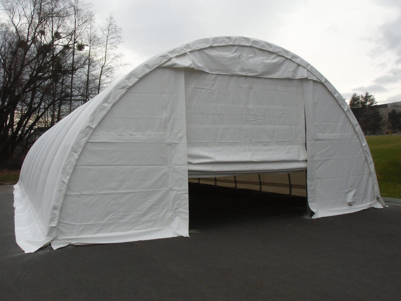 Crates packed, Hot Galvanized, 11 groups 60x1.8 mm arch tubing on 2.0m spacing, 5 groups 40x1.5mm purlins, one rope roll up door in front and back end, door size: W3.7 x H3.7m.